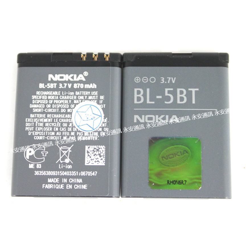 永安 裸裝 原廠公司貨 nokia bl 5bt bl5bt 原廠電池 870mah n75 2608 7500s