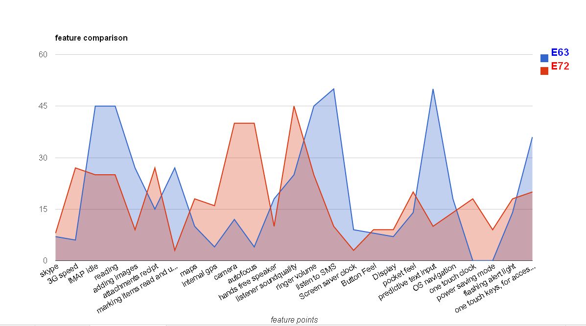 comparison nokia e72 vs e63 phonesdata