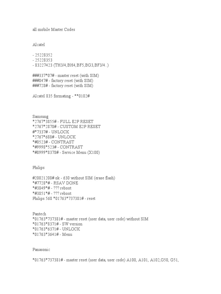 master unlock code