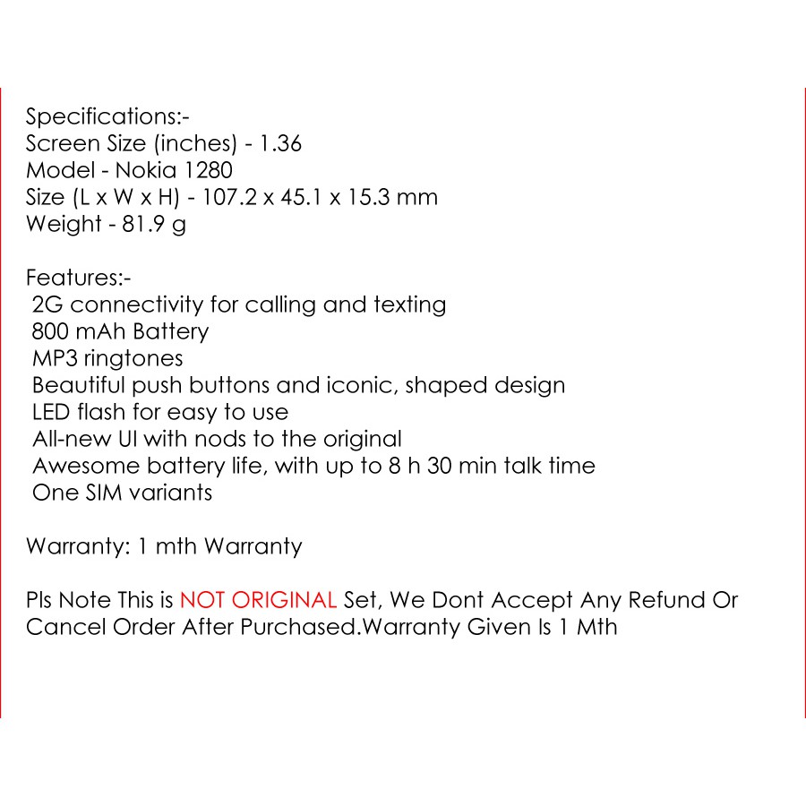 nokia 1280 2g handphone brand new in box
