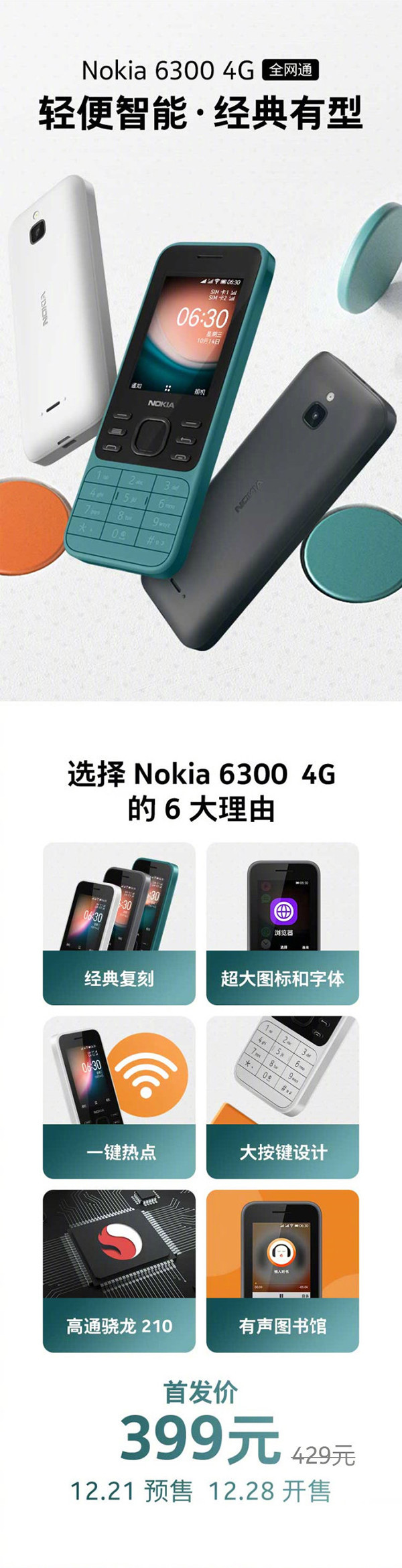 诺基亚6300 4g开启预售价格不到400待机近乎一个月 诺基亚6300 高通骁龙 新浪科技 新浪网