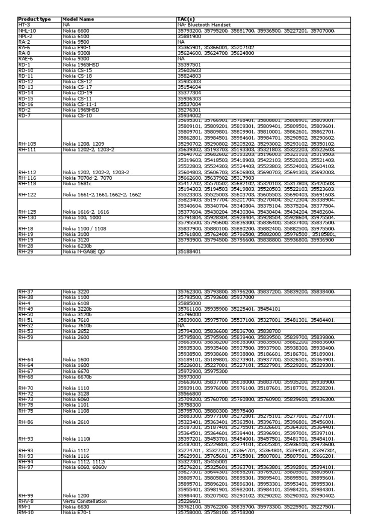 nokia imei table