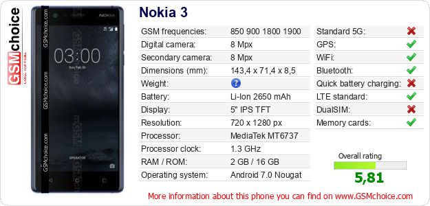 nokia 3 specifications