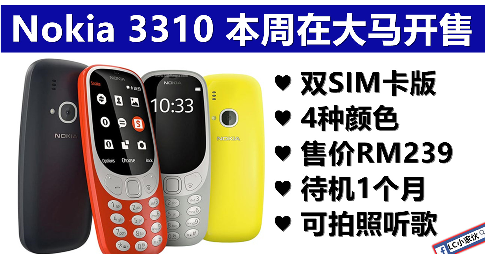 馬來西亞 全款引進 nokia 3310 將在4月尾上市 nokia 3 5 6 將在五月份開賣 vtech
