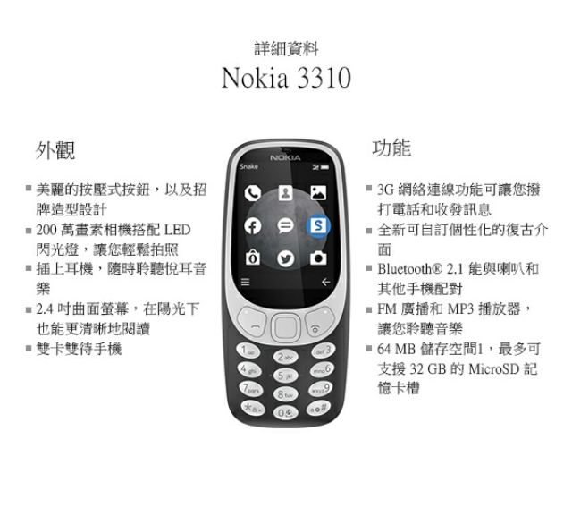 nokia 3310 3g 適用於原創者 nokia 手機台灣 台灣 繁體中文