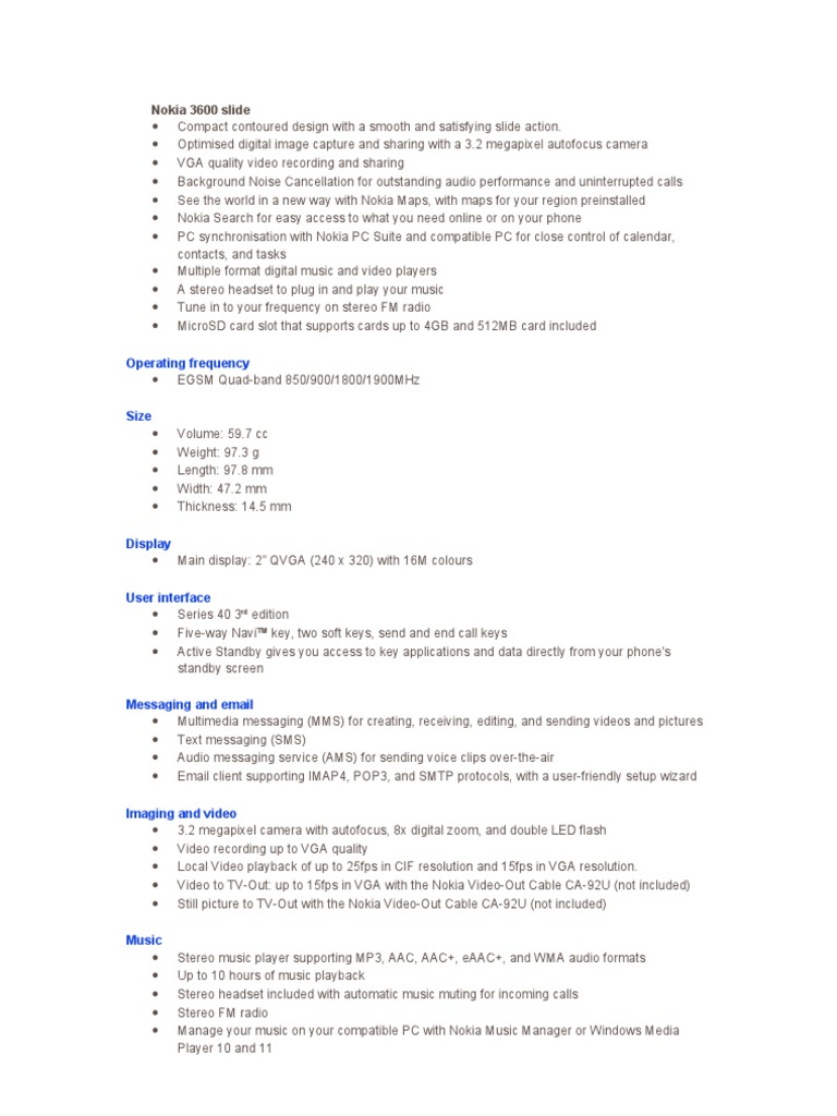 nokia 3600 slide technical specifications gsmchoice com
