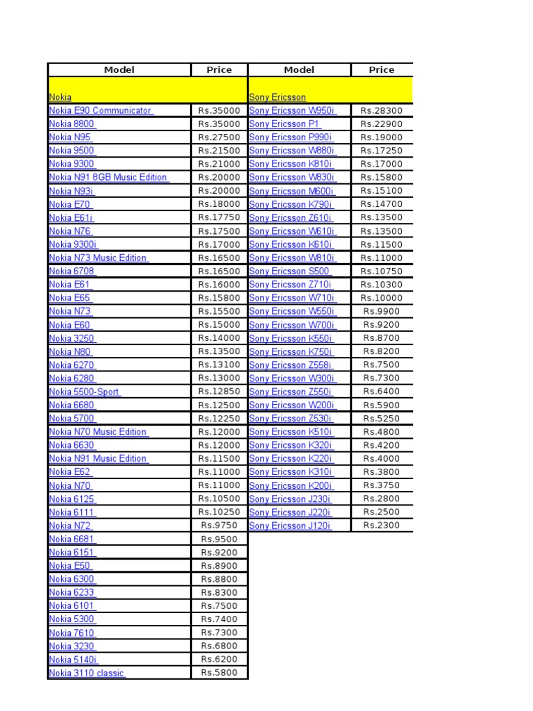 download free different price of nokia