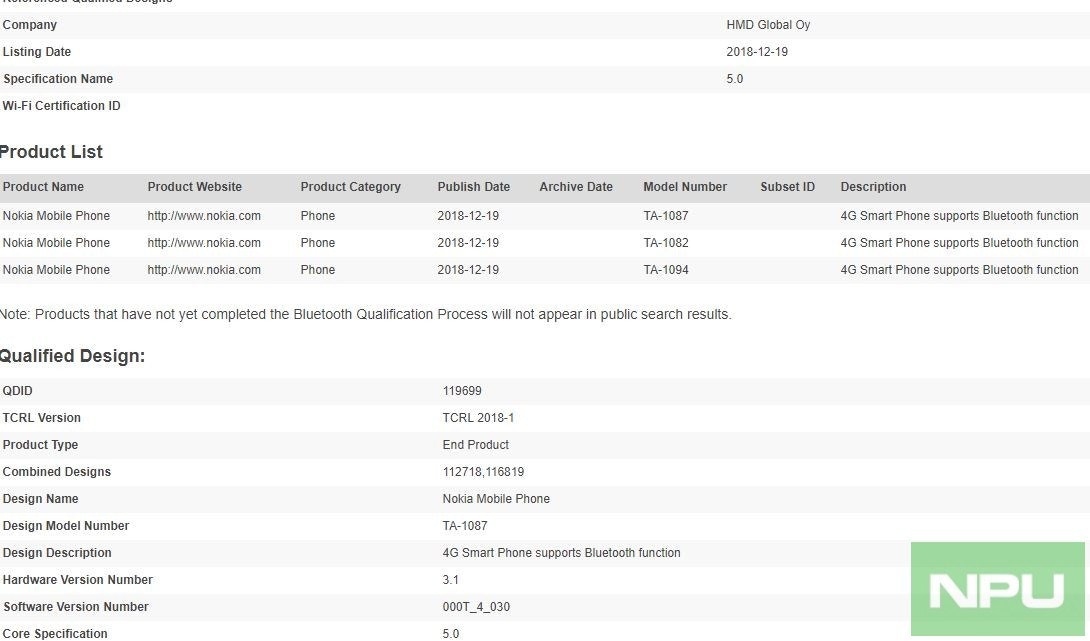 nokia 5 passes bluetooth certification ta 1024 1027 1044 1053 nokiamob