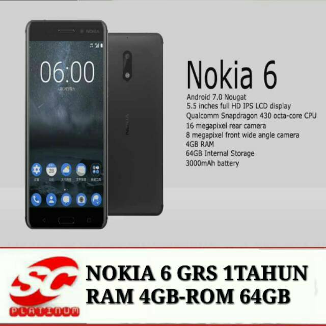 nokia 6 black mate ram 4gb rom 64 grs 1 tahun distributor