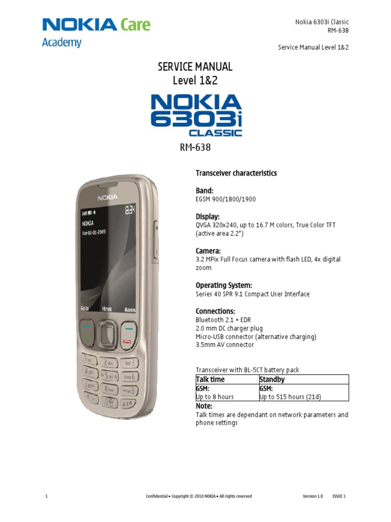 nokia 6303 clasic rm 443 service manual level 1 2 www s manuals com 6303c 1 2 v1 0