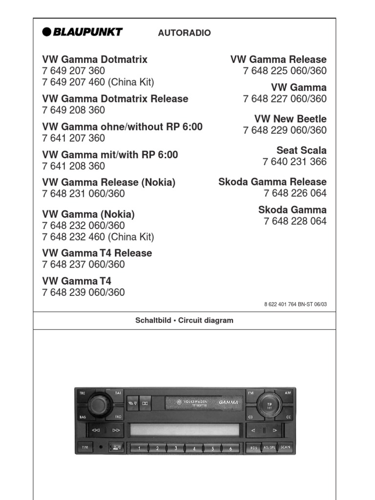vw blaupunkt gamma v service manual eng ger