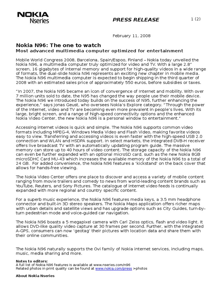 nokia multimedia computer n96 for video