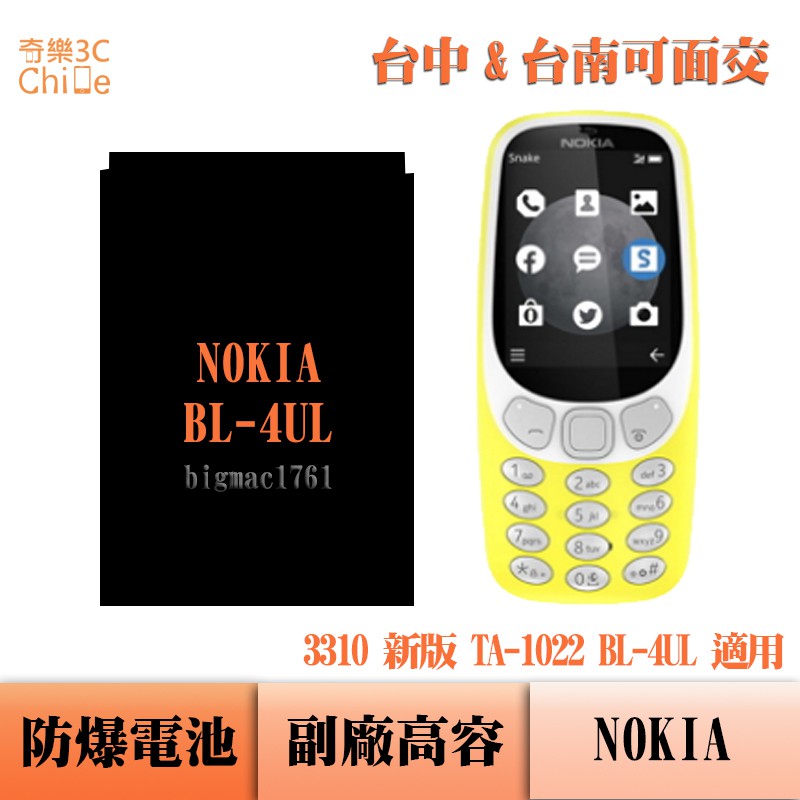 nokia bl 4ul 原廠電池 nokia 2017 新版3310 3g版 ta 1022