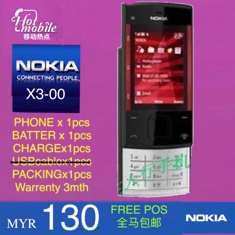 original nokia x3 00 2nd renew set telefon 原装诺基亚 x 00 二手翻新手机