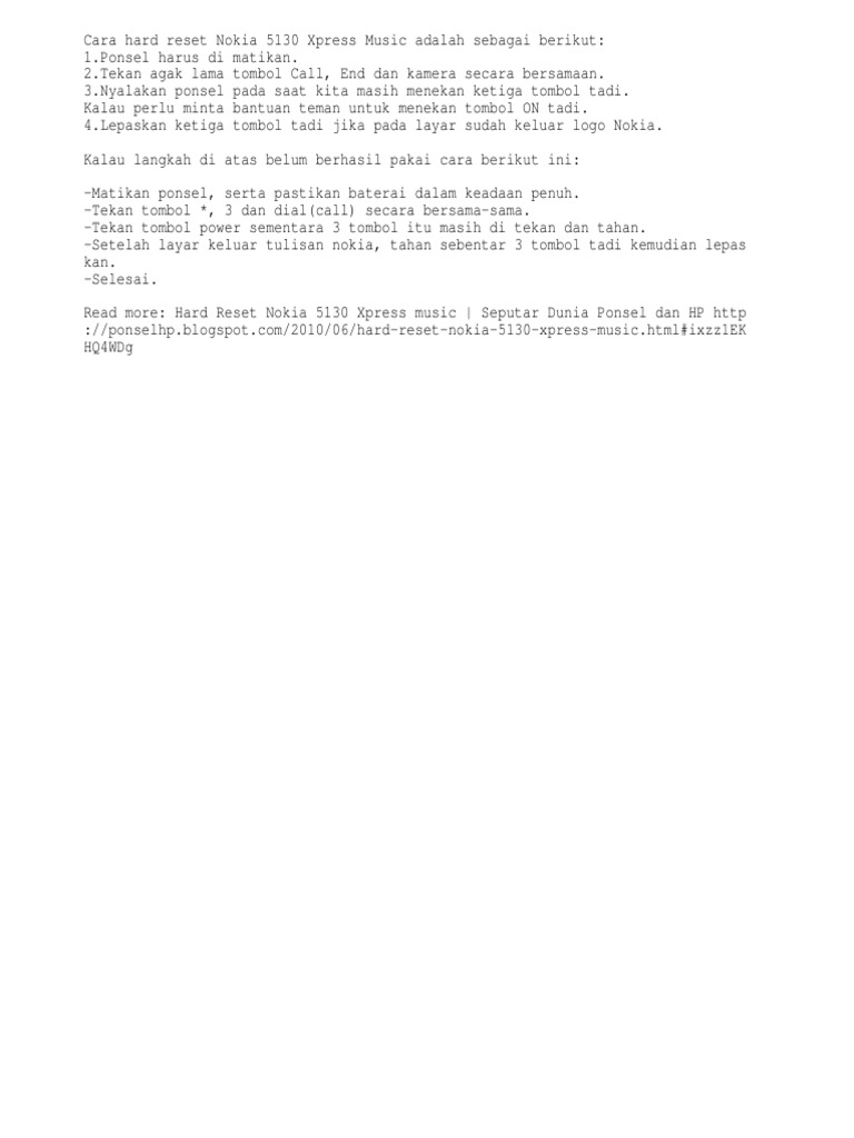 solved nokia 5130 c2 xpress music master reset code fixya